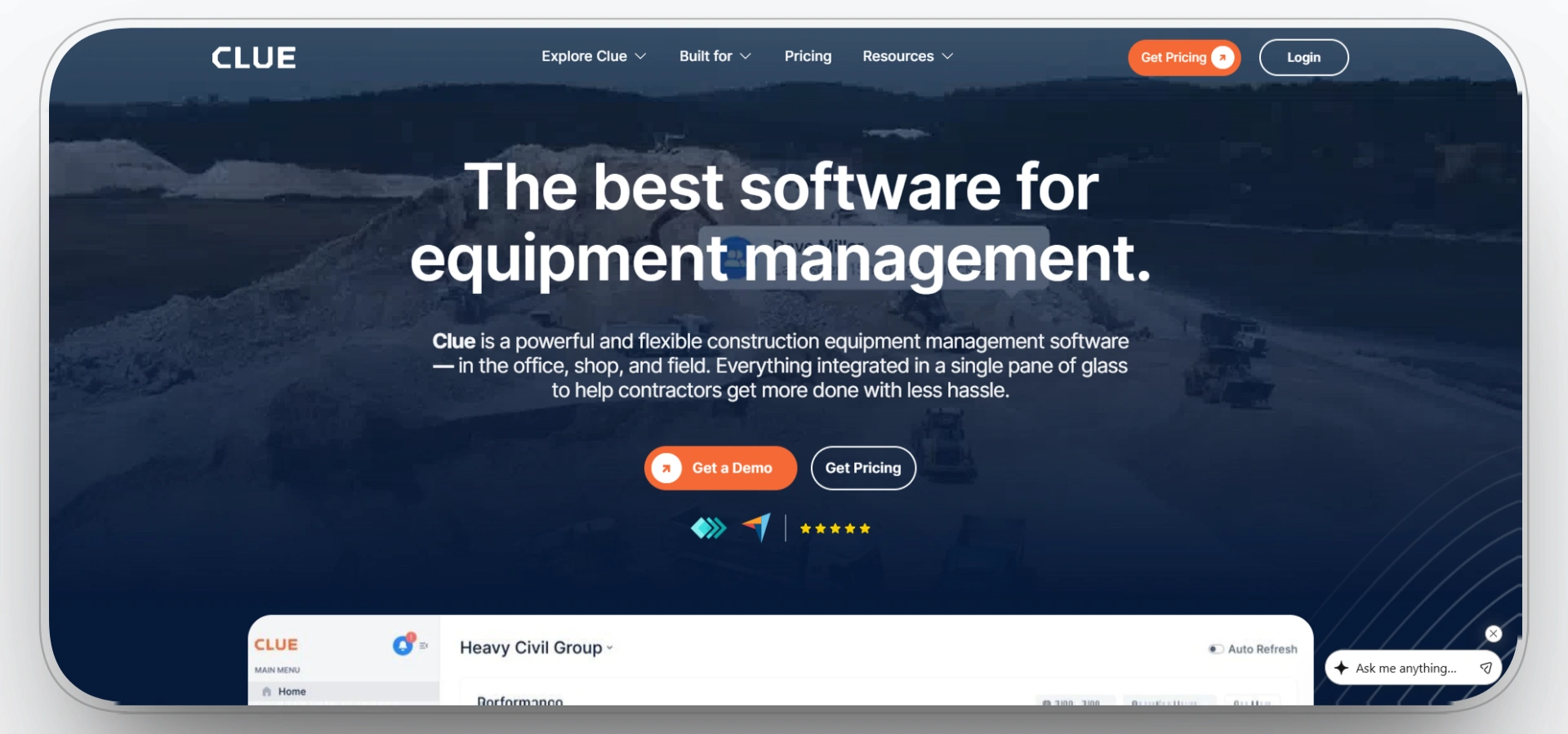 Clue is best suited for mid-to-large contractors with significant equipment fleets managing multiple projects across different sites.