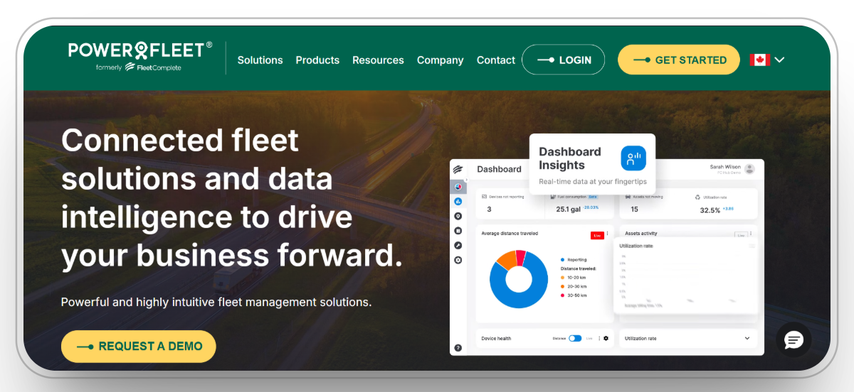 Fleet Complete (now part of Powerfleet) offers advanced fleet management solutions with real‑time GPS tracking, driver performance monitoring and maintenance alerts. The system integrates telematics and dash cameras to monitor driver behavior and prevent accidents. Features include GPS vehicle tracking, driver monitoring, electronic logging for hours of service, advanced reports and an online dashboard.