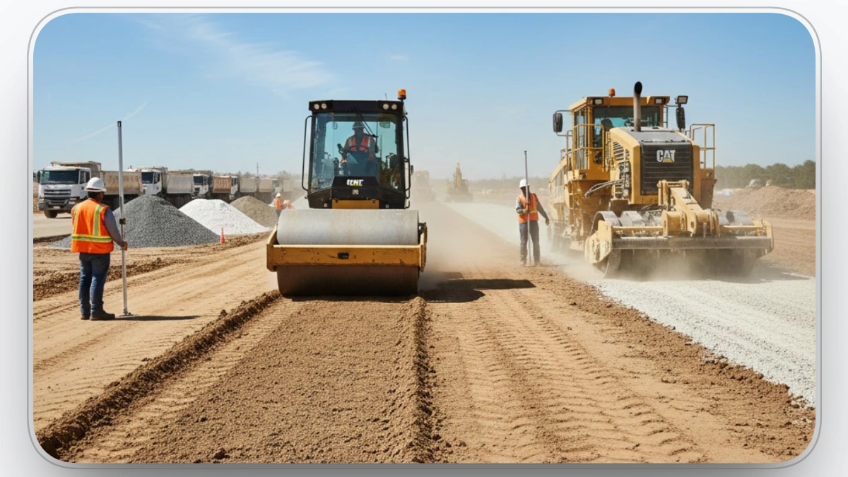 The goal is simple, create a dense, uniform base that supports pavement layers and prevents future deformation.
