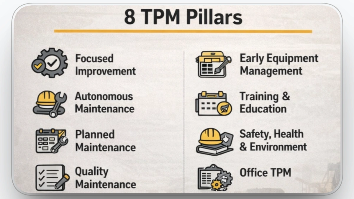 That is the practical promise of the 8 TPM Pillars: a steadier fleet, a steadier jobsite, and far fewer days lost to avoidable chaos.